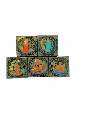 Lot Of 5 Russian Black lacquered Trinket Box's 1x2"