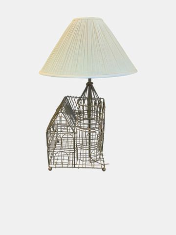 Keywords: birdcage lamp, metal cage lamp, vintage inspired lighting, wire frame lamp, decorative table lamp, pleated shade lamp, sculptural lighting, eclectic decor, aviary lamp, bird cage light, vintage style lamp, metal wire lamp, statement lighting, whimsical lamp, cottage lighting, French country lamp, farmhouse lighting, conversation piece, unique table lamp, cage structure lamp, openwork lamp, vintage farmhouse, shabby chic lighting, bohemian lamp, artisan style lighting, novelty lamp, decorative lighting, accent lamp, ambient lighting, contemporary vintage