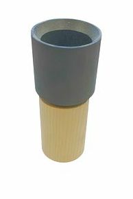 Modern blonde wood and cast iron pillar candleholder, 7.5" h, 3" diam.