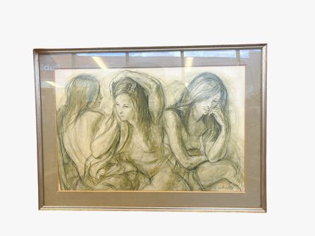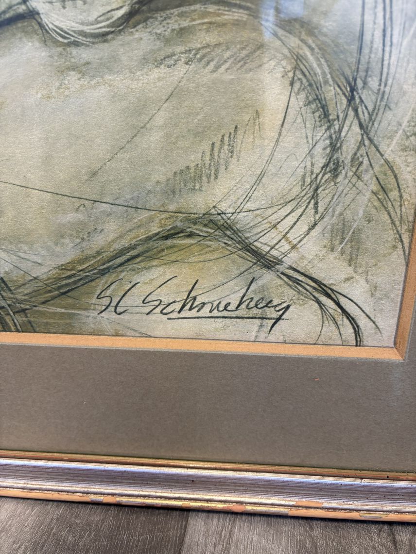 "Morning Reflections," lithograph in gold frame by S. C. Schoneberg, 33" h x 40.