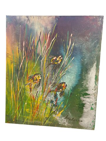 Original unframed oil on canvas underwater scene, signed T. Pastorino, 23.25" h