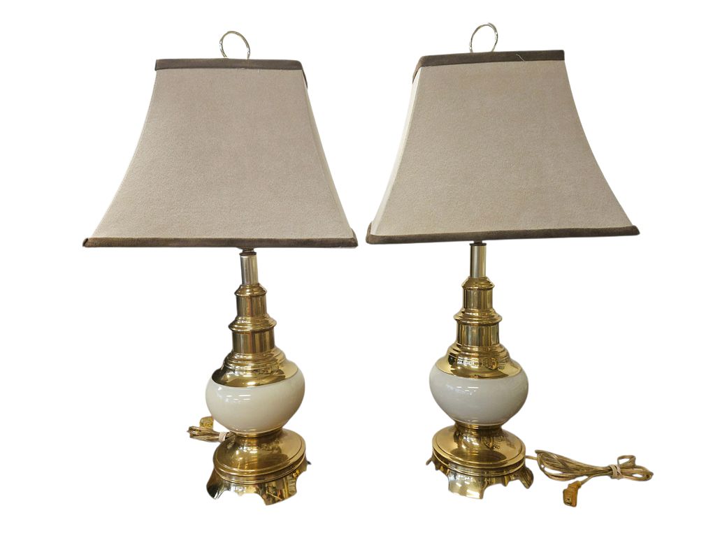 Pair Brass Stiffel Ostrich Egg Base Table Lamps 28"