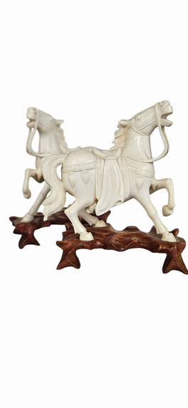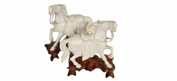 Pair Carved Warrior Horse Figurines 6.6"H x 5"w
