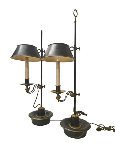 Pair Circa 1820 French RegencyTole Bouillotte Lamps (as is) 29"h x 9"dia