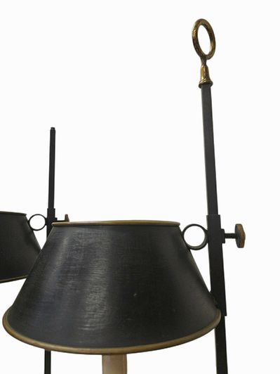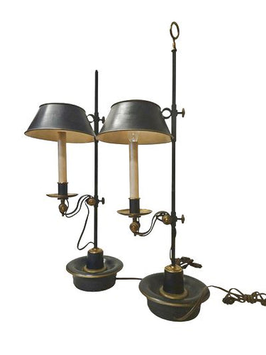 Pair Circa 1820 French Regency Tole Bouillotte Lamps (as is) 29"h x 9"dia