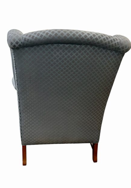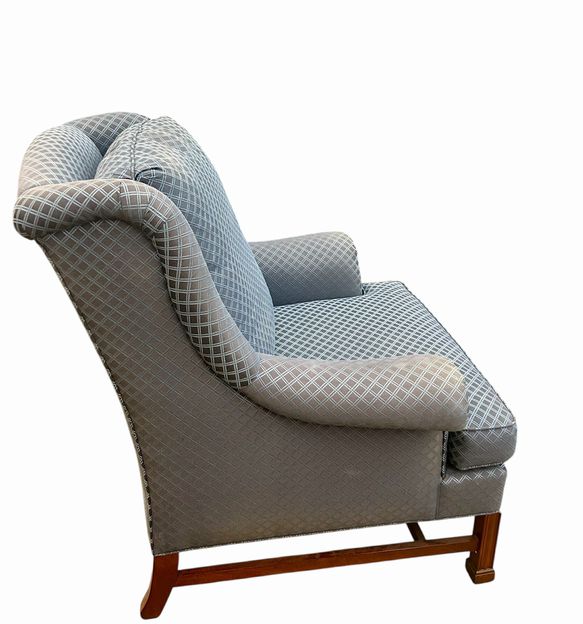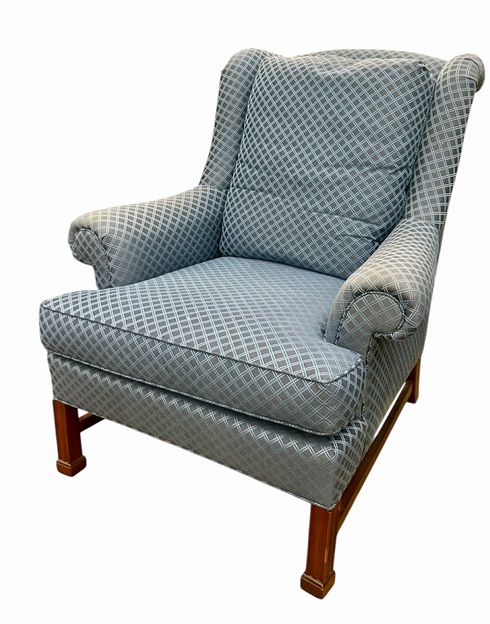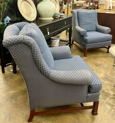 Pair Hickory Chair George III Style Mahogany Wing Chairs, H. 41 in. x W. 35.5 in. x D. 33 in. (as is)