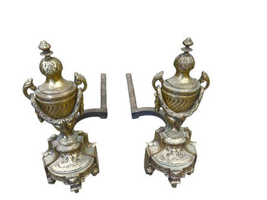 PAIR of 19th-century brass andirons, 12" h, 5" w