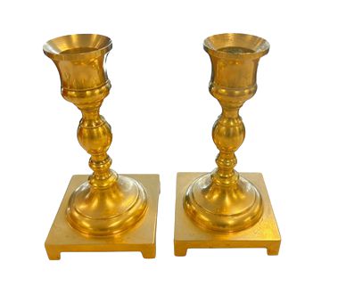 PAIR of brass candleholders w/ square base, 5" h
