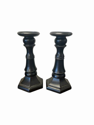 Pair Of Ebonized Wood Candlesticks 11x6"