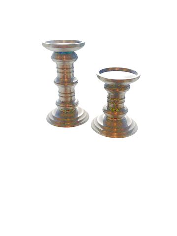 Pair Of Pottery Barn Pewter Candle Holders 6x5",8x5"