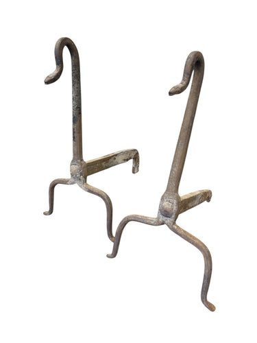 PAIR of primitive snake andirons, 16" h, 9" w ea.