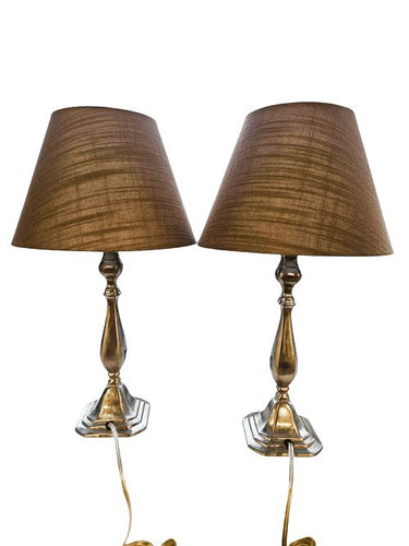 Pair Pewter Nightstand Lamps, Taupe Shade 17"h x 4w"