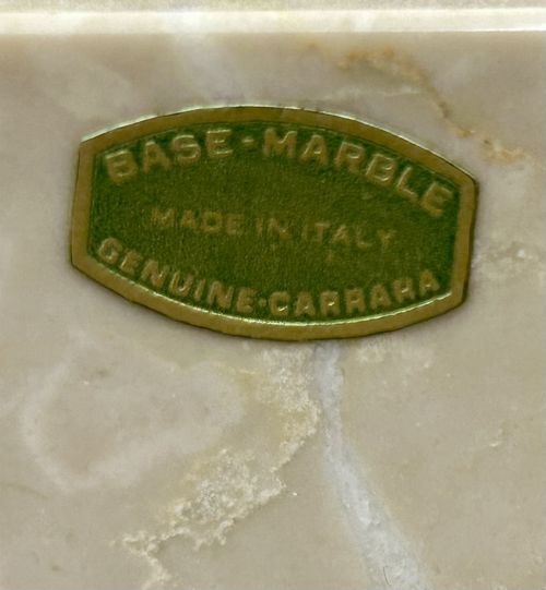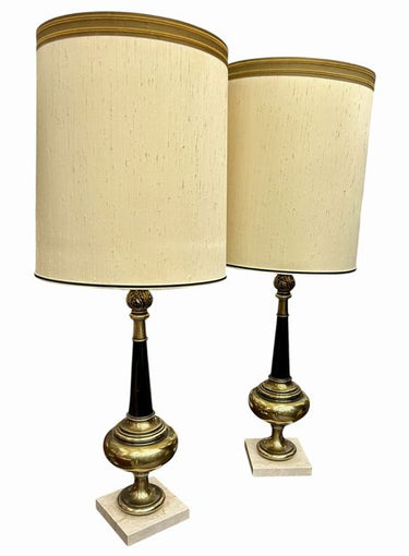 Pair Stiffel Brass & Enamel Table Lamps w/Carrara Marble Base, H. 39 in.