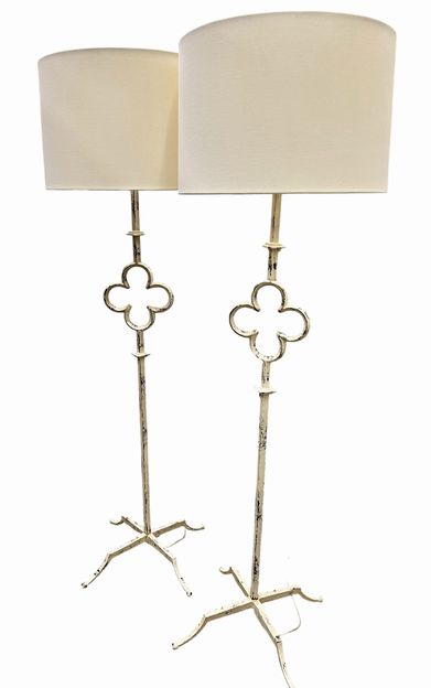 Visual Comfort Suzanne Kasler Quatrefoil White Distressed Paint Floor Lamps, H. 65 in. x W. 21 in. Base