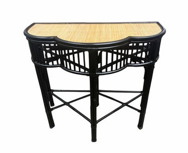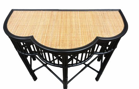 Palecek black painted rattan console table w/ woven top, 34.5" h, 39.75" w, 19.5