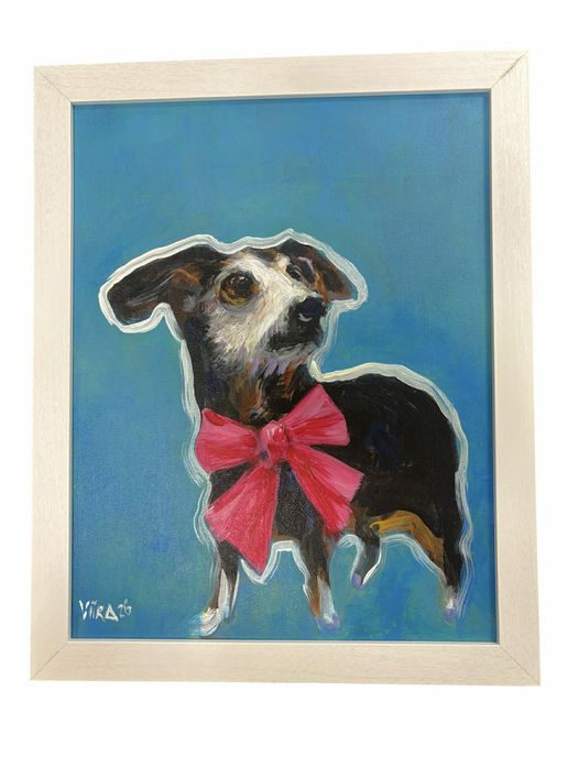"Poppy," original acrylic on canvas in white frame by Aviira, 15.5" h x 12.5"