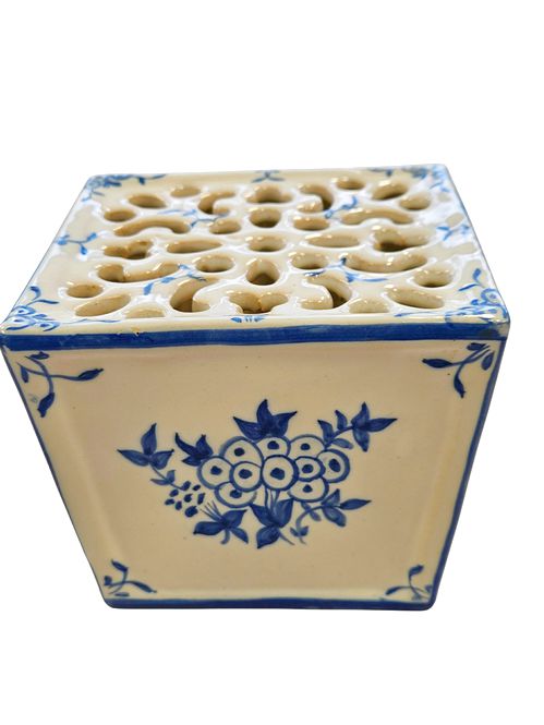 Portuguese Ceramic Flower Frog Vase 4"h x 5"sq.