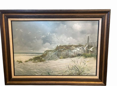 "Rendezvous," large framed vintage beach scene print by Carolyn Blish, 32.5" h x 45" w
