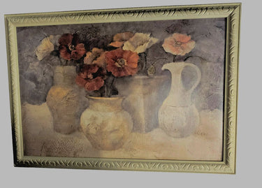 Repro Floral Textured Print, 4 Vases w Poppies 28"h x 41"w