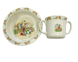 Royal Doulton Bunnykin Cup, 3" h, & Bowl, 6.25" diam.