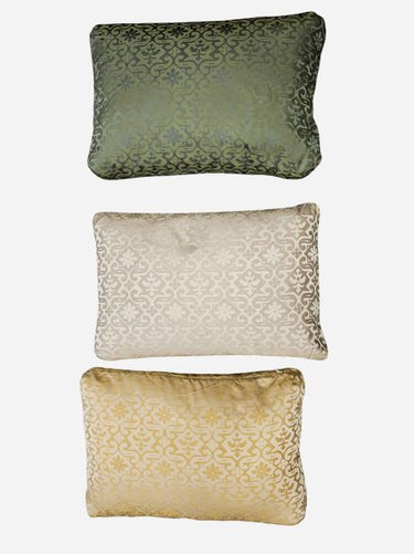 Set/3 Woven Paterned Silk Lumbar Pillows 12"h x 18"w, Gold, Beige, Green