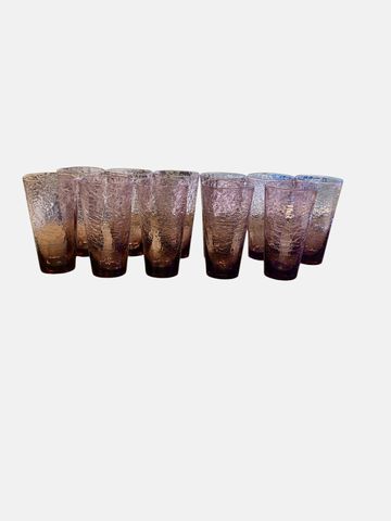 Set Of 11 Bryce Symphony Amethyst Crackle Glasses 6.5"