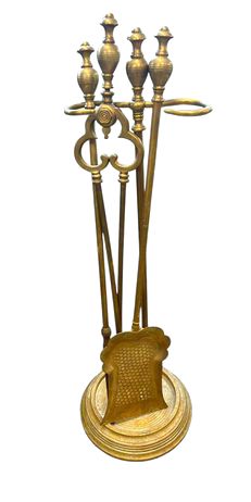 Set of 3-pc brass fireplace tools w/ stand, 25" h