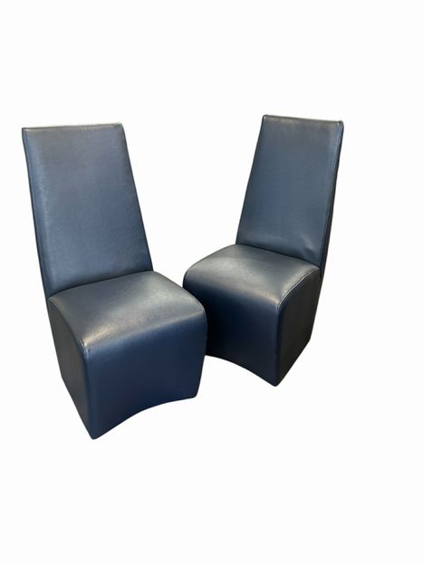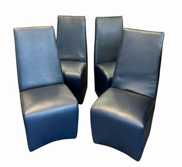 Set of 4 Blue Vinyl Upholstered Dining Chairs