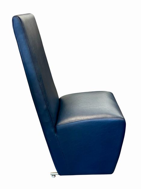 Set of 4 Blue Vinyl Upholstered Dining Chairs, H. 38.5 in. x W. 17.5 in. x D. 19.5 in.