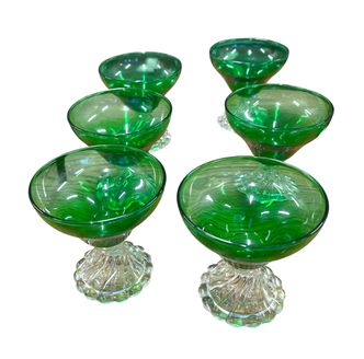 Set of 6 Anchor Hocking "Burple" green/clear glass champagne/sherbet glasses, 4"