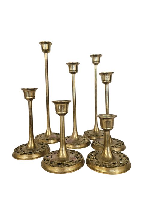 Set of 7 Indian Brass Candlesticks 3"h to 9"h
