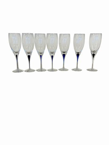 Seven Orrefors Intermezzo Blue Crystal Wine Glasses 9x3"