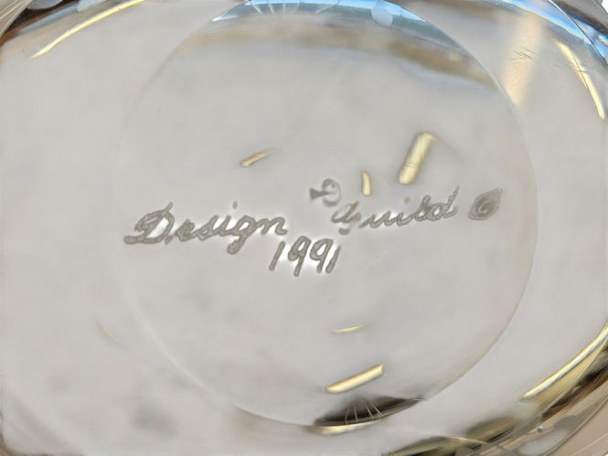 Signed Etched Etched Glass Oblong Bowl, Signed "Design Studio 1991" 3"h x 17"l