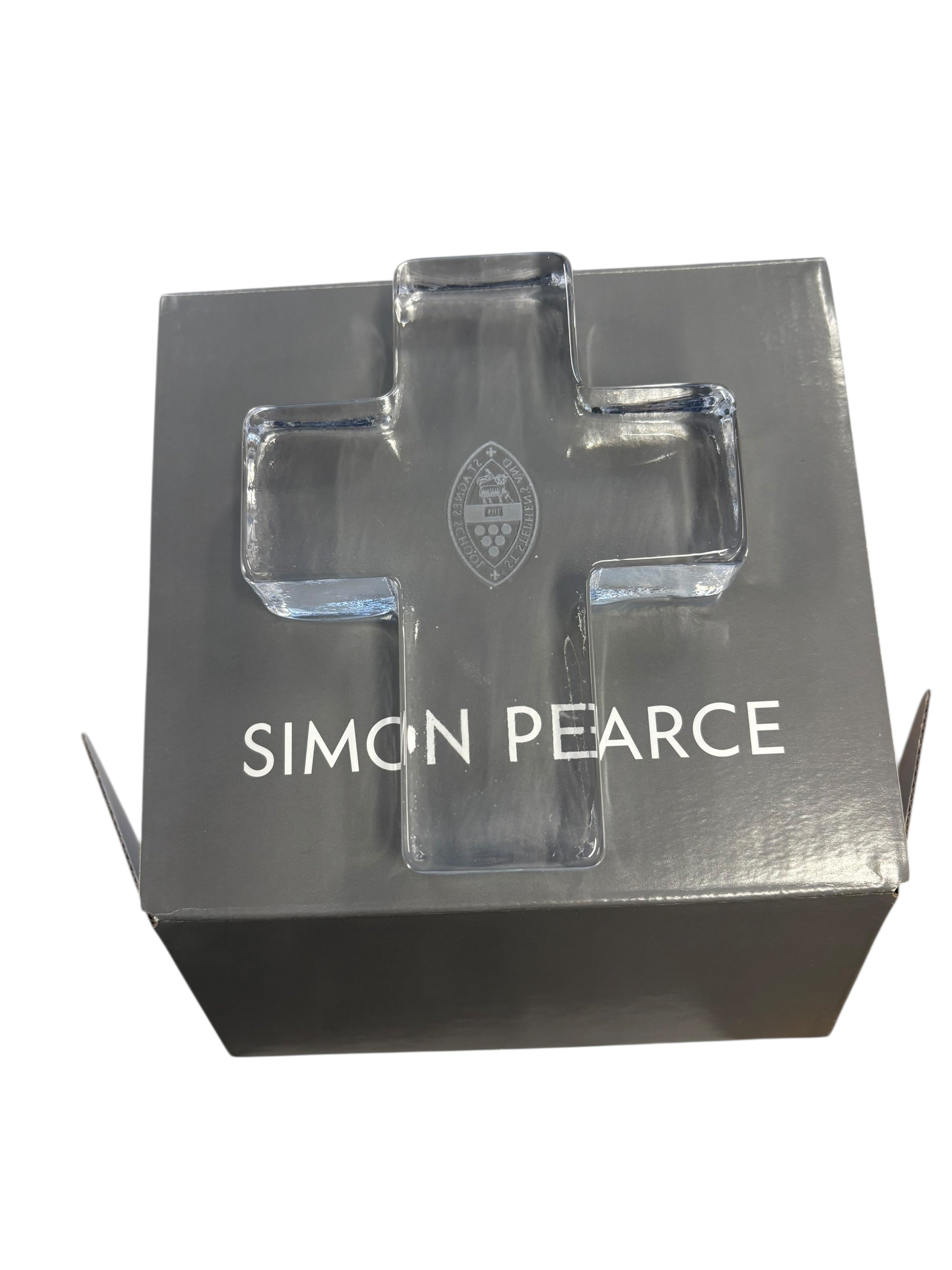Simon Pearce St. Stephen's & St. Agnes School cross paperweight, 4.75" h, 4" w,
