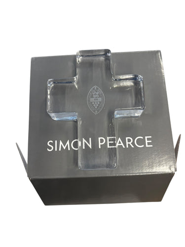 Simon Pearce St. Stephen's & St. Agnes School cross paperweight, 4.75" h, 4" w, 1.25" d