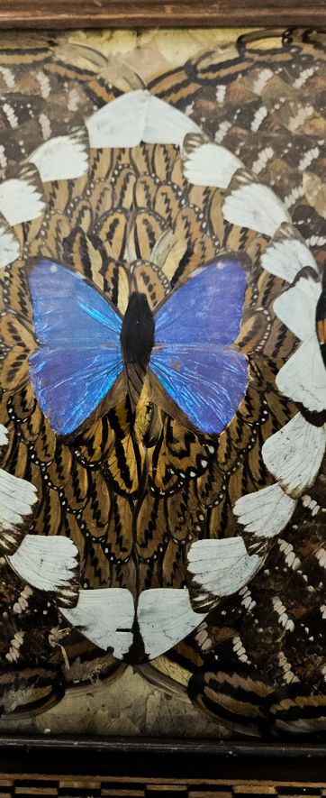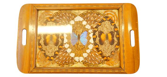 Brazil Marquetry Wood Tray w Butterflies under Glass Surface 18"' x 11"w x 2"d