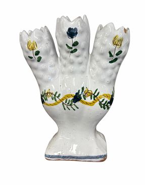 Three-finger pottery vase from Portugal, 5.25" h, 4" w, 2" d