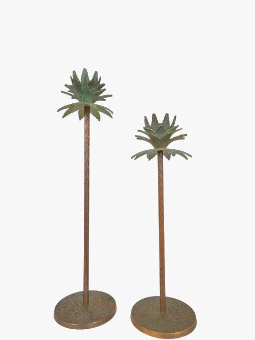 Traditional Palm Tree Candleholder Pair 13" and 11"h