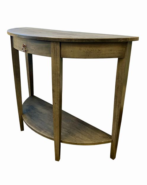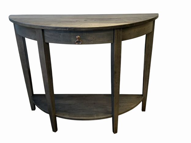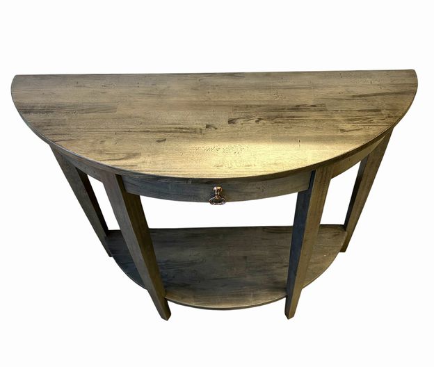 Transitional Grey Stained Demi-Lune Console Table, H. 32 in. x W. 42 in. x D. 16 in.