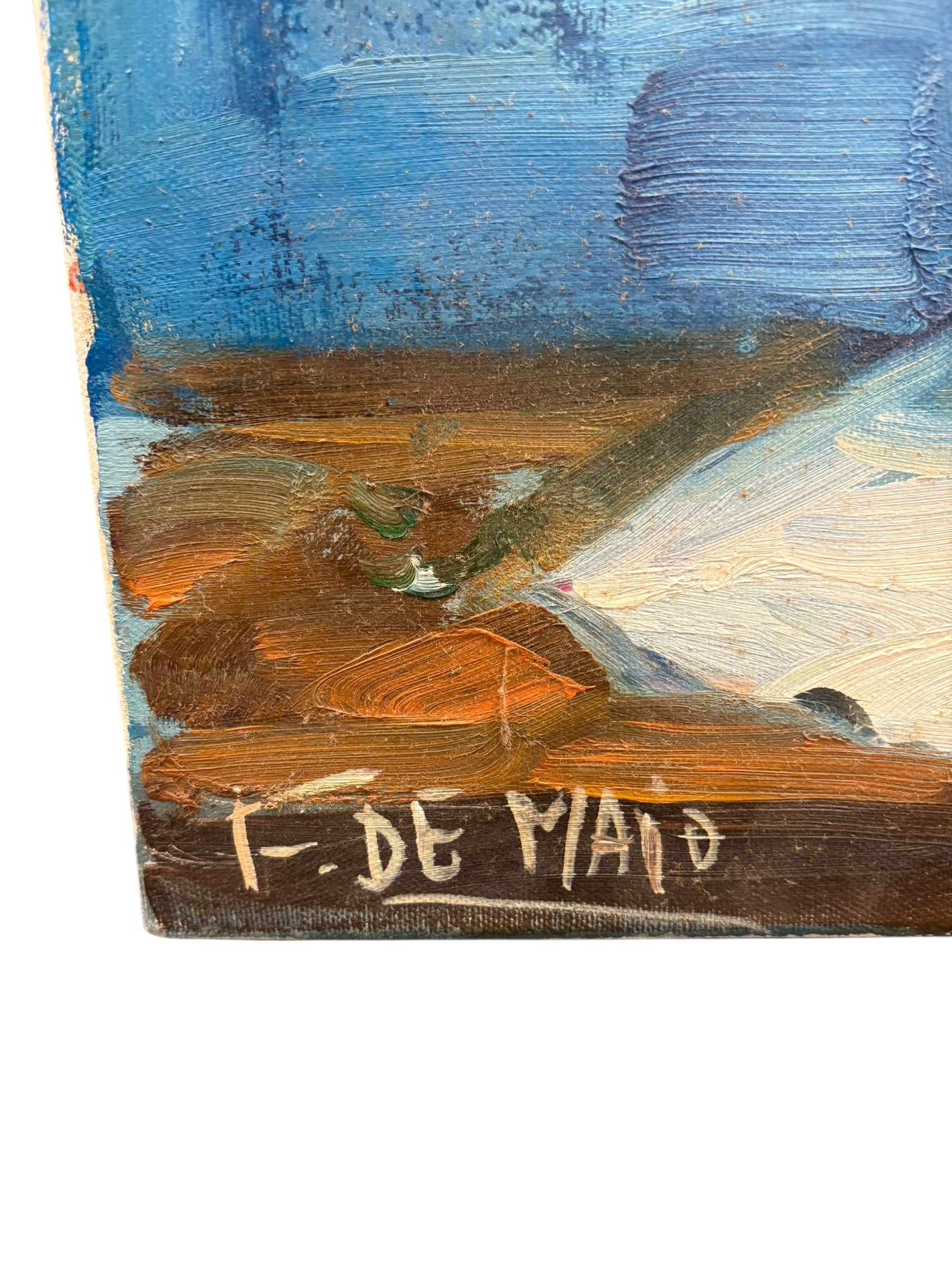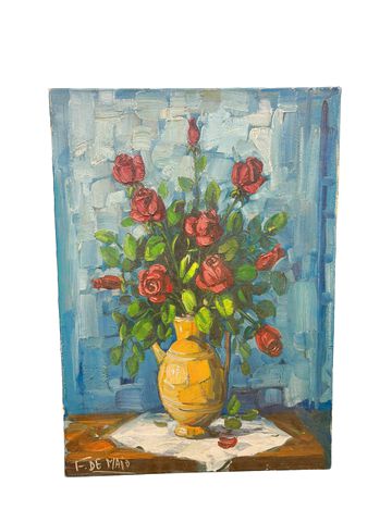 Unframed oil on canvas still life by F.D. Maio