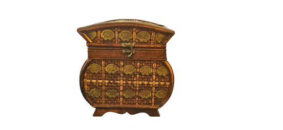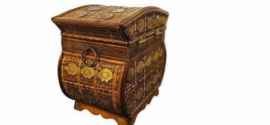 Vintage Bamboo with Brass Lidded Basket 12"h x 12"w x 8.5"