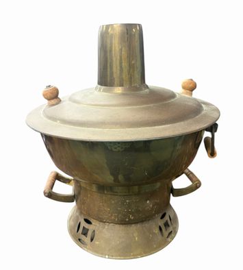 Vintage brass Mongolian hot pot, 11" h, 10.5" diam.