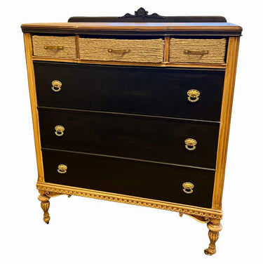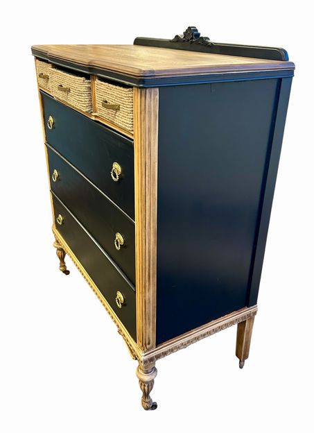 Vintage Natural Wood & Black Painted Dresser, H. 47 in. x W. 38 in. x D 19 in.
