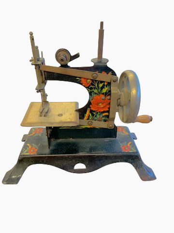 Vintage Stamped Metal "Casige "Crank Driven Toy Sewing Machine 8x8"