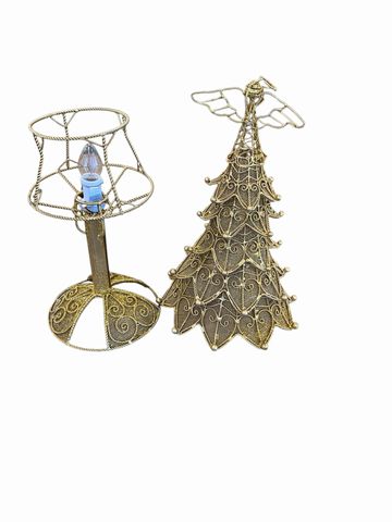 Vintage-Style Gold Wire Table Top Holiday Tree & Light 12x7"