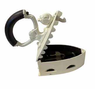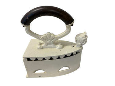 Vintage white cast iron flat iron, 8.75" h, 7" w, 3.75" d