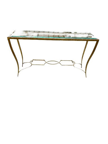 Warm Metal + Beveled Glass Transitional Console Tbl.