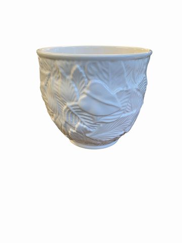 White Ceramic Planter w/Embossed Leaf Pattern 8x8"