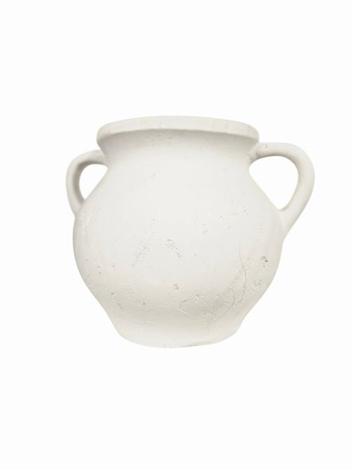 White Decorative Pottery Jar w Handles 8"h x 8"dia